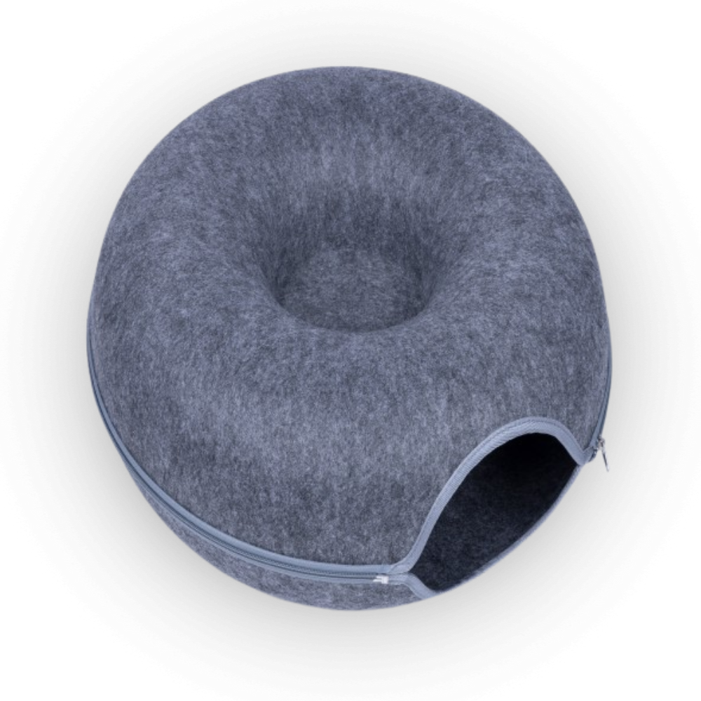 Tunel i nietypowy kształt legowiska zachęcają kota do eksploracji i interakcji, wspierając jego ciekawość i zdolności poznawcze.